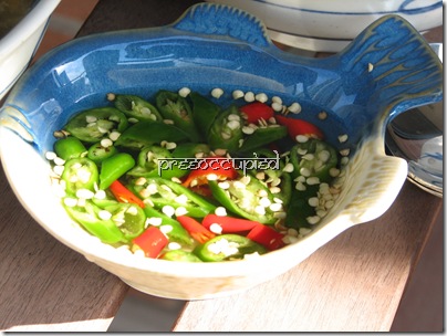 My Mum always made me thin chicken soup whenever I had my infamous tonsil-sinus bouts. And Ma (my Mother-in-law) used to give me this bowl of broth with freshly squeezed lemon juice, some chopped garlic and fresh cracked black pepper to cure me of my cold. But I was in no mood for either. Since I am my own boss here, I settled for something filling so I wouldn’t have to cook dinner. A bowlful of Chicken Sweet Corn Soup with some bread sticks seemed quite dependable. Not to mention the extra chopped chilies I put in my bowl.